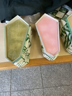 | 御札の形をした「しょうが糖」は、お伊勢参りに行ってきた証として土産にしたそうです。 | 「喜久屋」にはしょうが糖(大阪ではしょうがいた)の割れたお徳用もありました。 |