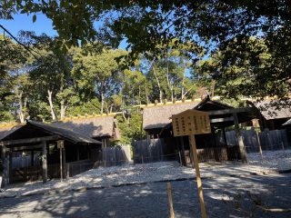 案内板に従い内宮方面へ歩いていると、こんもりとした鎮守の森が見えてきました。