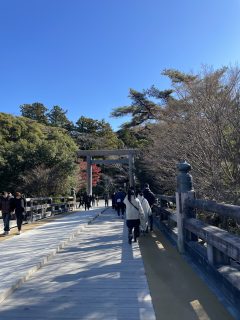 令和の時代も、伊勢参りは人気なので混雑する正月三が日を過ぎた、ちょうど今頃が参拝日よりかもしれません。願わくば、冬晴れの平日が良さそうです。正式に外宮からお参りしたい場合は、出発は早めにして伊勢市駅で下車します。外宮から内宮へは少し距離があるのでバスが便利です。「おはらい町」「おかげ横丁」では、伊勢の地酒、まる天、蒸し牡蠣、はまぐり焼き、松坂牛の手毬寿司、、、伊勢グルメもぜひお楽しみくださいね。