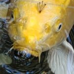 | 親子連れや若い女性で賑わう猿田彦神社 | 境内の子宝池で悠々とおよぐ鯉が寄って来た! |