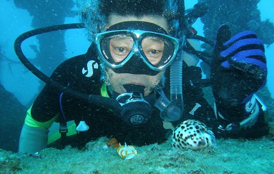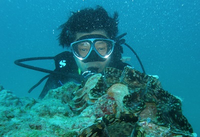 翌日は、当時から通ったダビングショップ・マリンスペースの玉栄さんと一緒に、平安座島の港から、金武湾でダイビング。